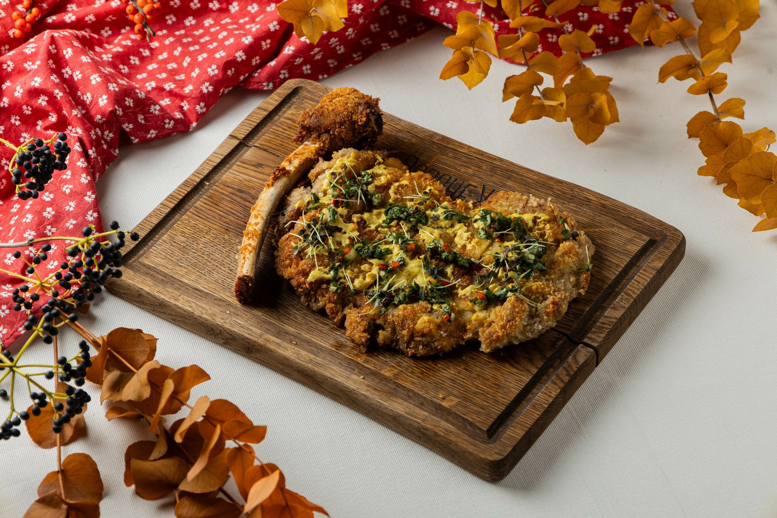 - Филе оленины с картофельным пюре, шпинатом и белыми грибами