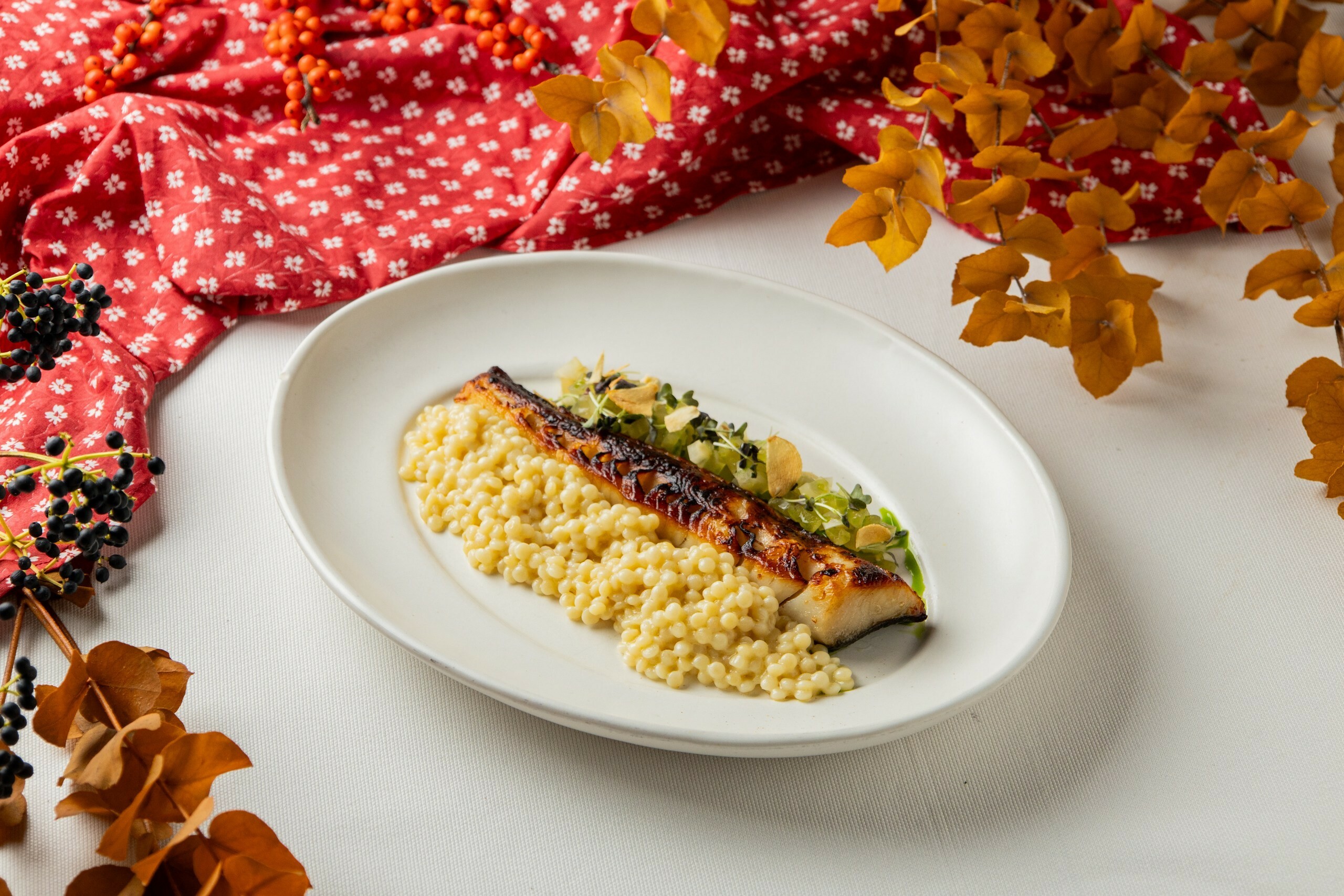 - Запеченная черная треска с пастой птитим