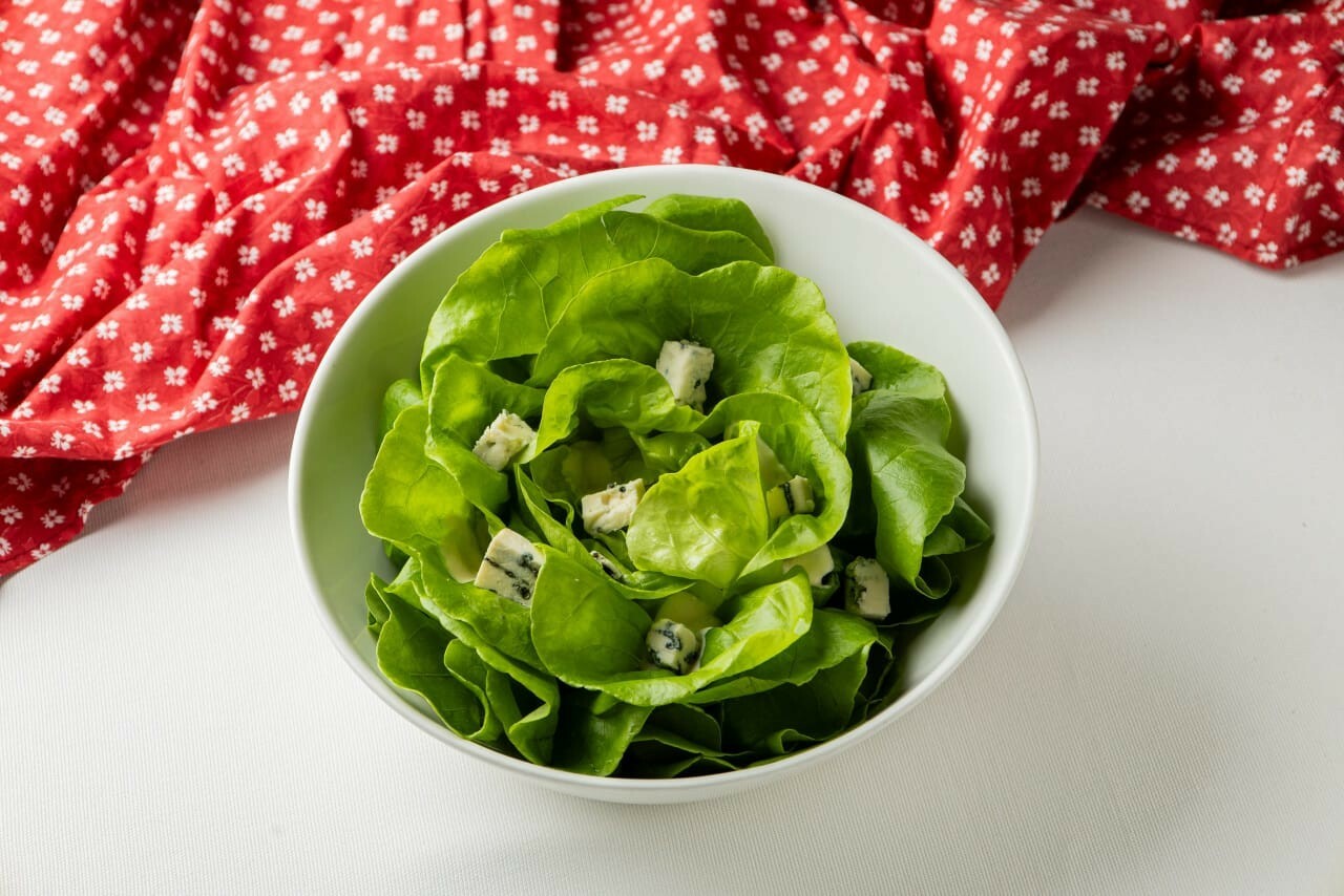Капустный салат, Краснодарские помидоры, голубой сыр, подсолнечное масло, горчица, мятная пудра